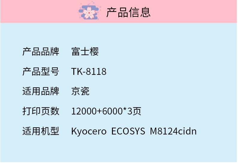 FC-tk8118通用耗材易加粉碳粉粉盒墨粉盒硒鼓富士櫻適用京瓷Kyocera M8124cidn打印機(jī)黑色黃色洋紅色青色