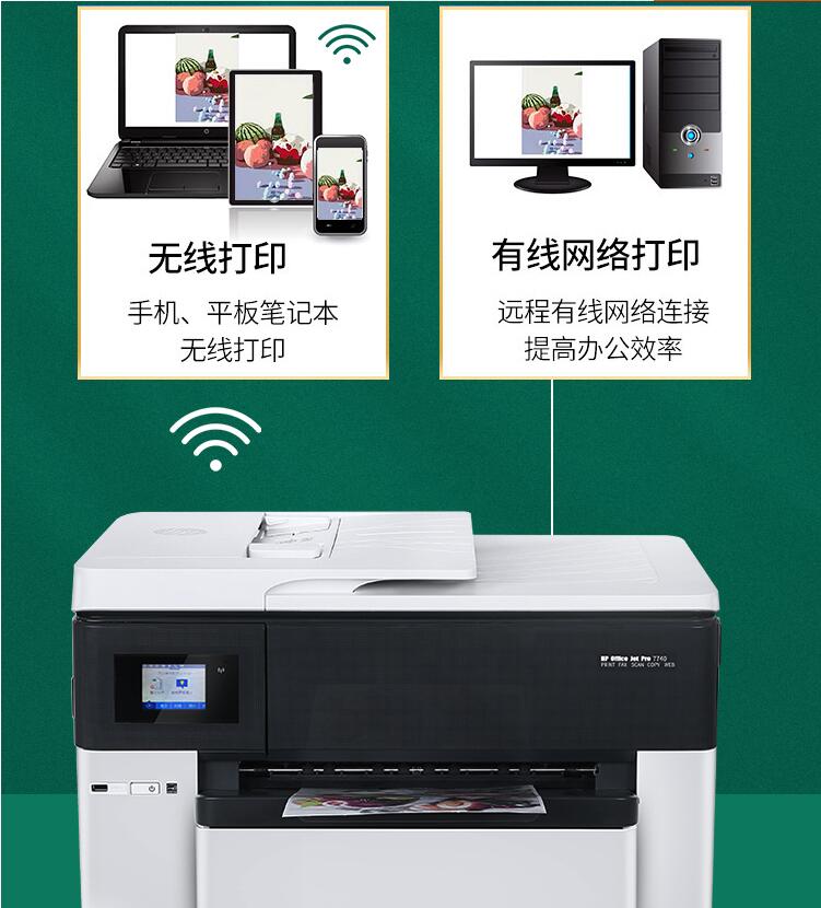 惠普A3彩色照片打印機復(fù)印一體機7740噴墨自動雙面A4辦公家用無線
